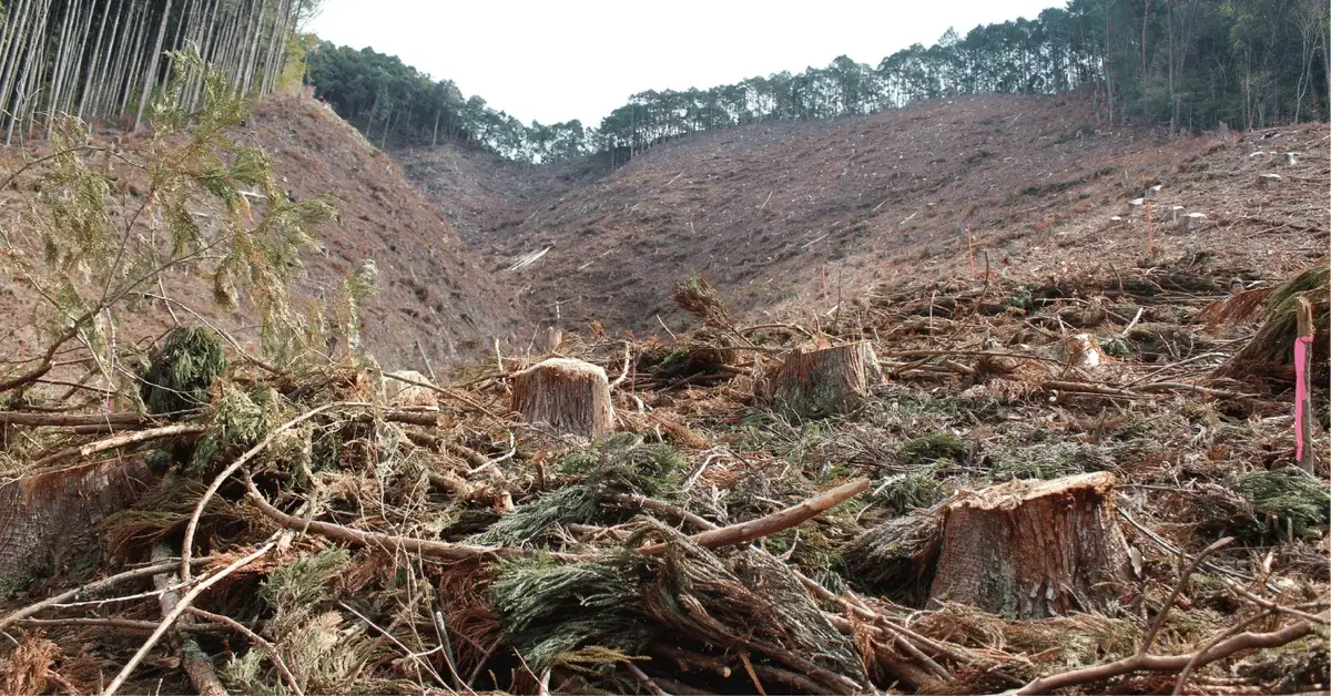 今年1月に杉檜の木々が伐採されたばかりの山。