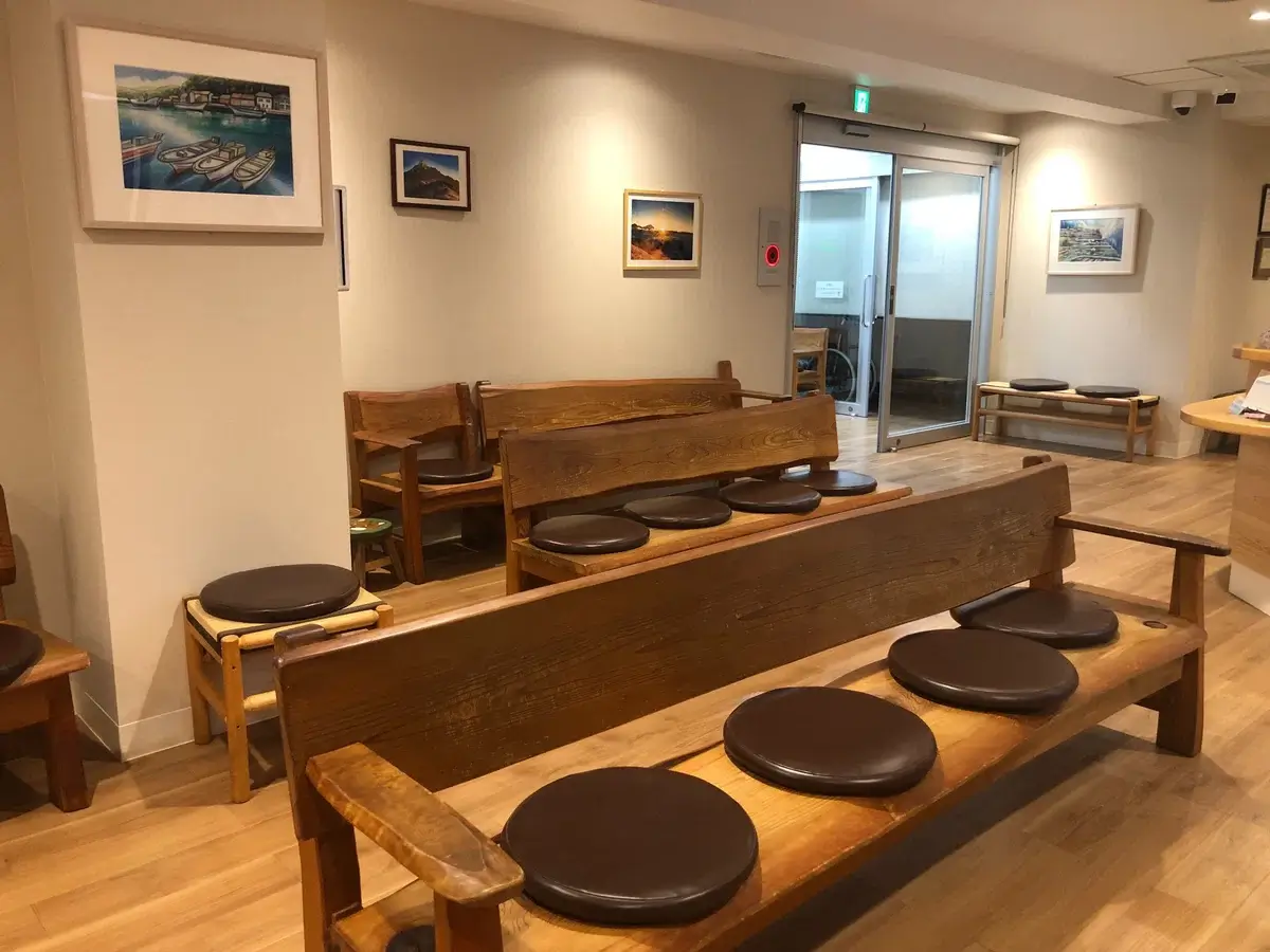 院内は国産材のベンチで温かな雰囲気。自然に触れ、心安らぎます。