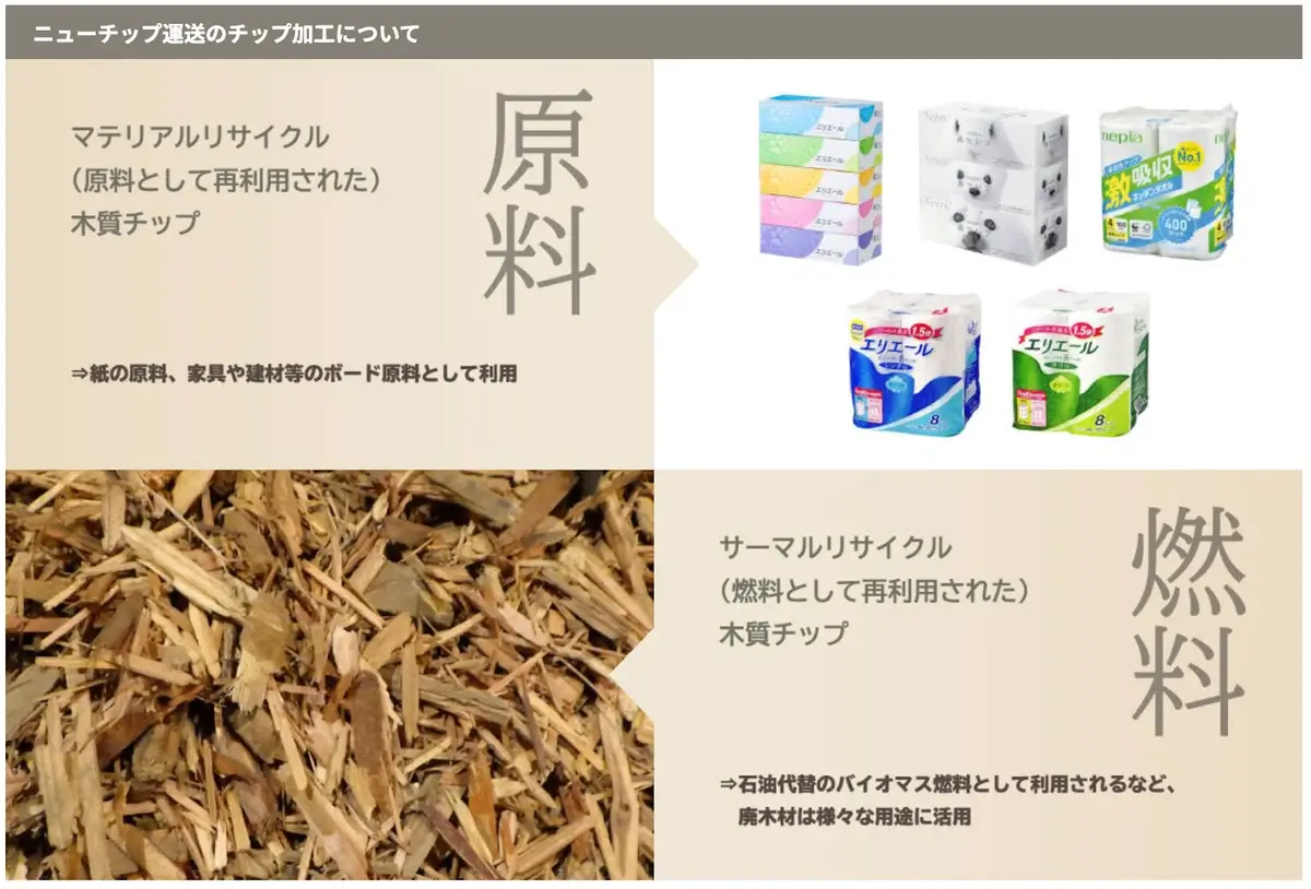 ー ニューチップ運送さんとは、「木」を活用しているという点で勝手ながら親近感をいだいております…!どのような事業をされているか、教えてください。