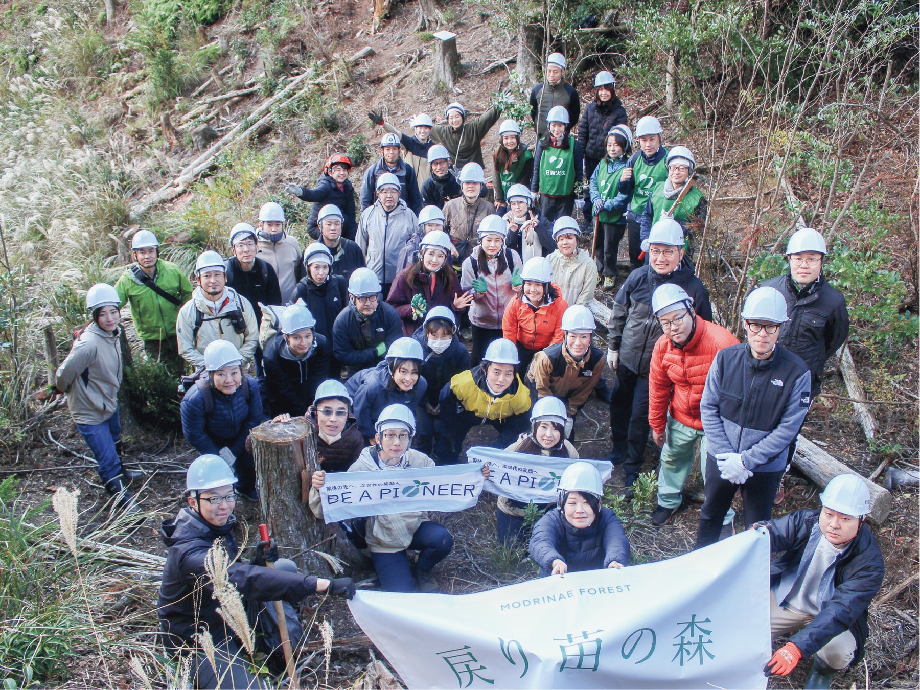 ソマノベースは、「人と人」「人と自然」「事業と自然」の関係を、森づくりでデザインする会社です。 土砂災害による人的被害をゼロにすることを目指し、山づくりや森林産業の再興に取り組んでいます。今回の合同植樹祭は、企業と共に森林保全活動を推進し、SDGsの目標達成に寄与する取り組みの一環として、取り組む企業のコミュニティづくりという狙いを合わせて、実施されました。