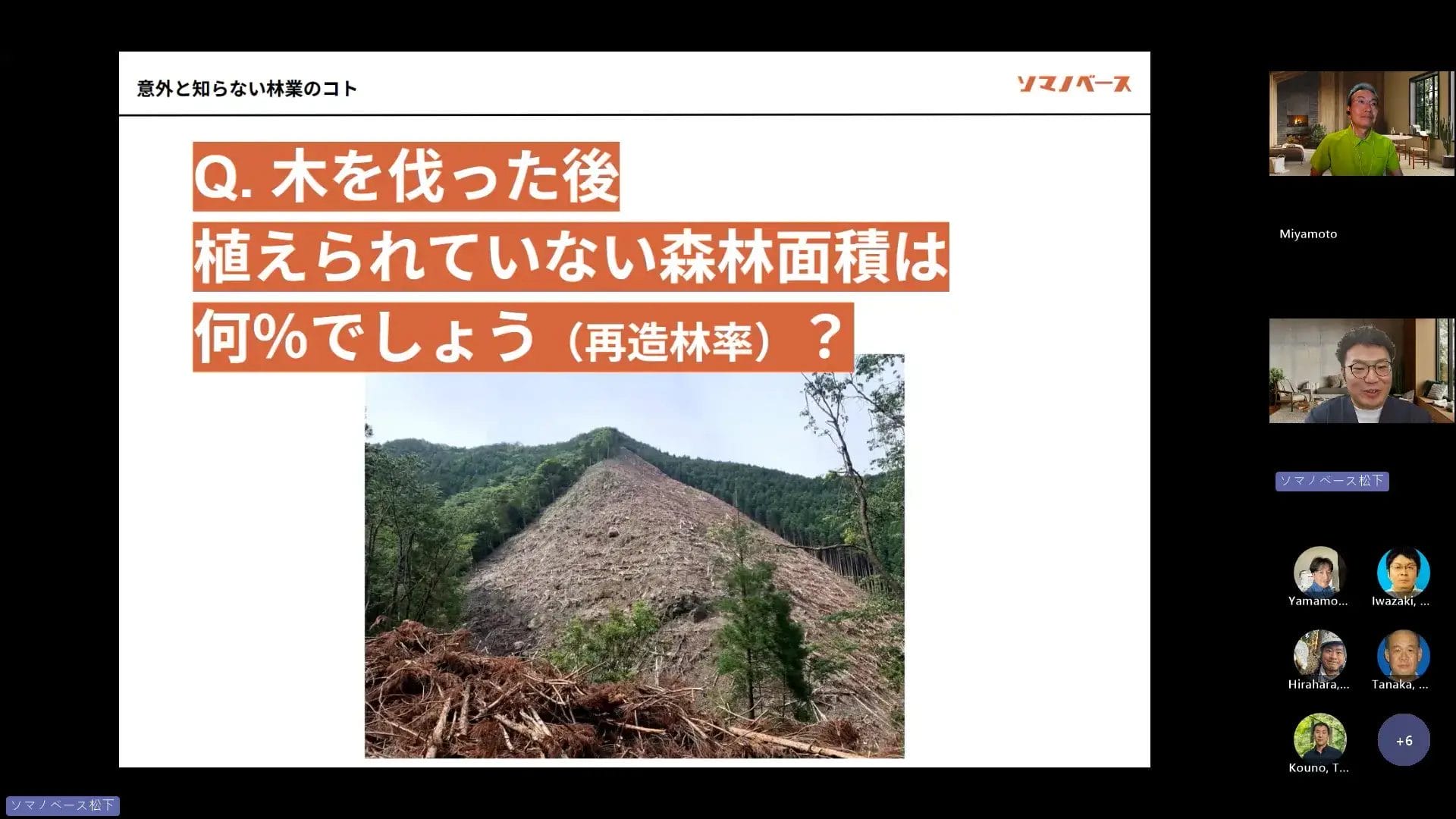 林業の現場で感じたリアルな課題や、都市と森をつなぐ「戻り苗(MODRINAE)」の実践事例などを交えながら、ソマノベースの活動と、その背景にある思いを共有しました。