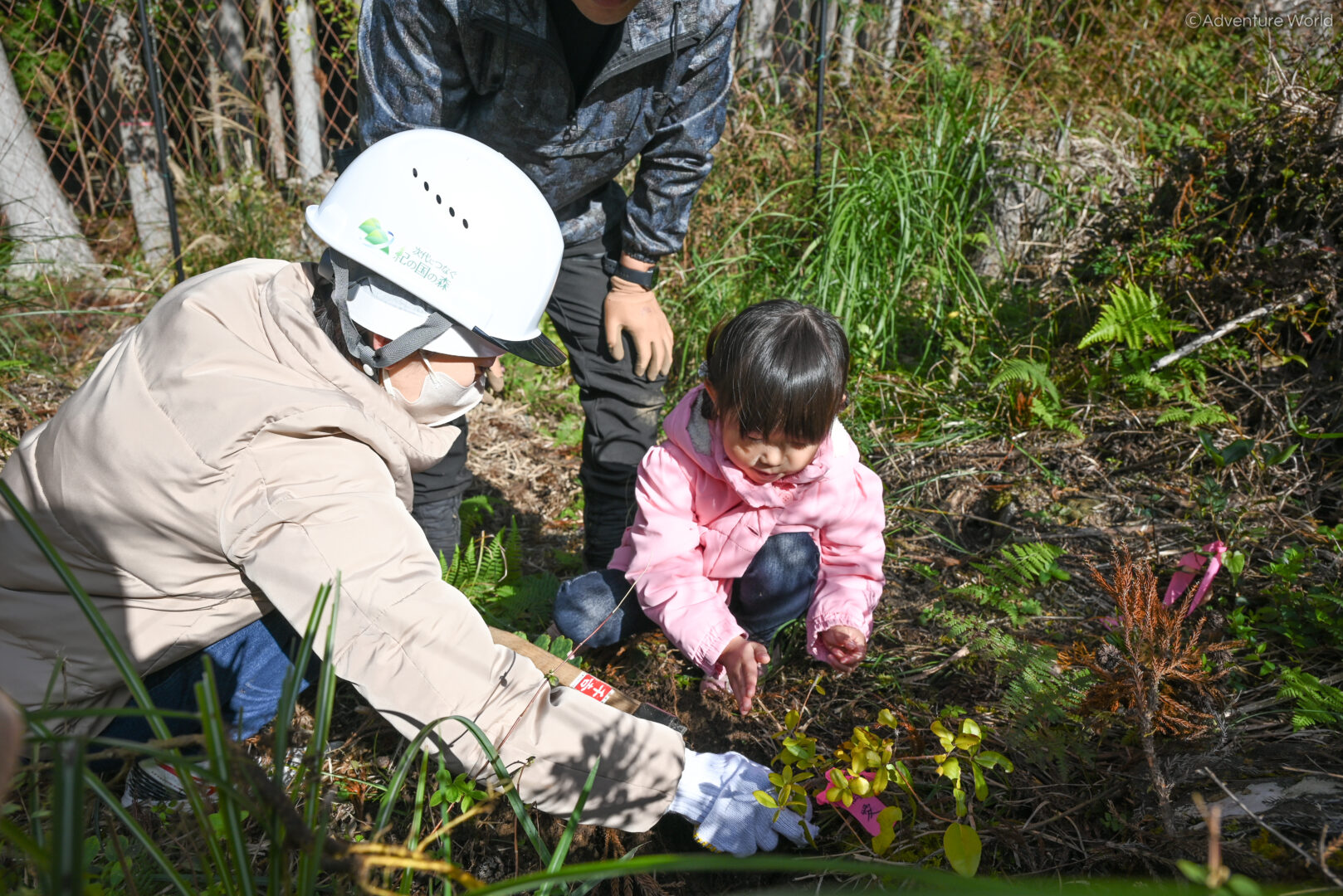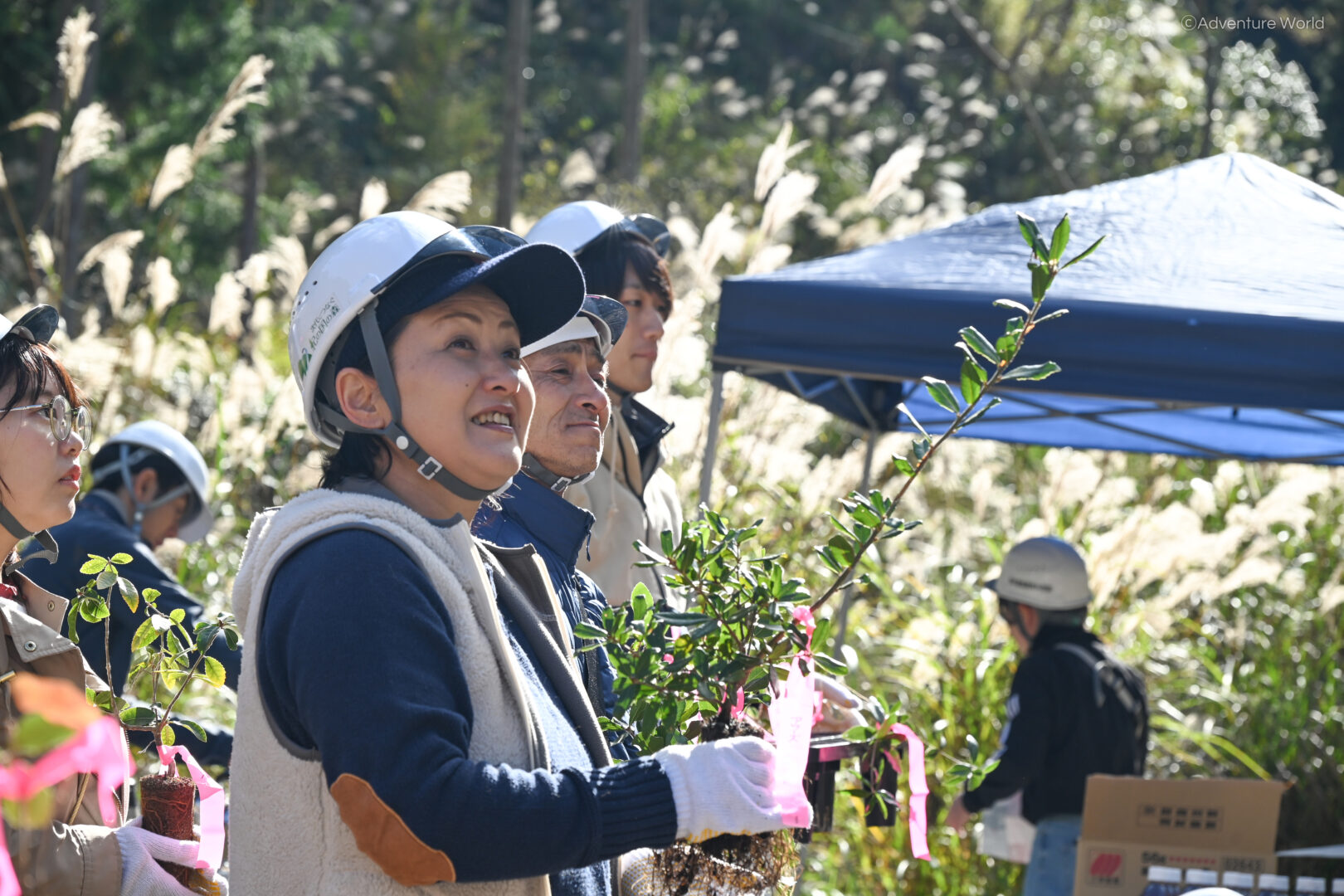 そして今年、苗木は立派に成長しました。大きく育った苗木を山へ戻すため、2025年10月29日と11月19日の2日間に分けて植樹イベントを実施。植樹だけでなく、自然環境の多様性を学ぶことを目的に、樹木医さんによるワークショップも行いました。