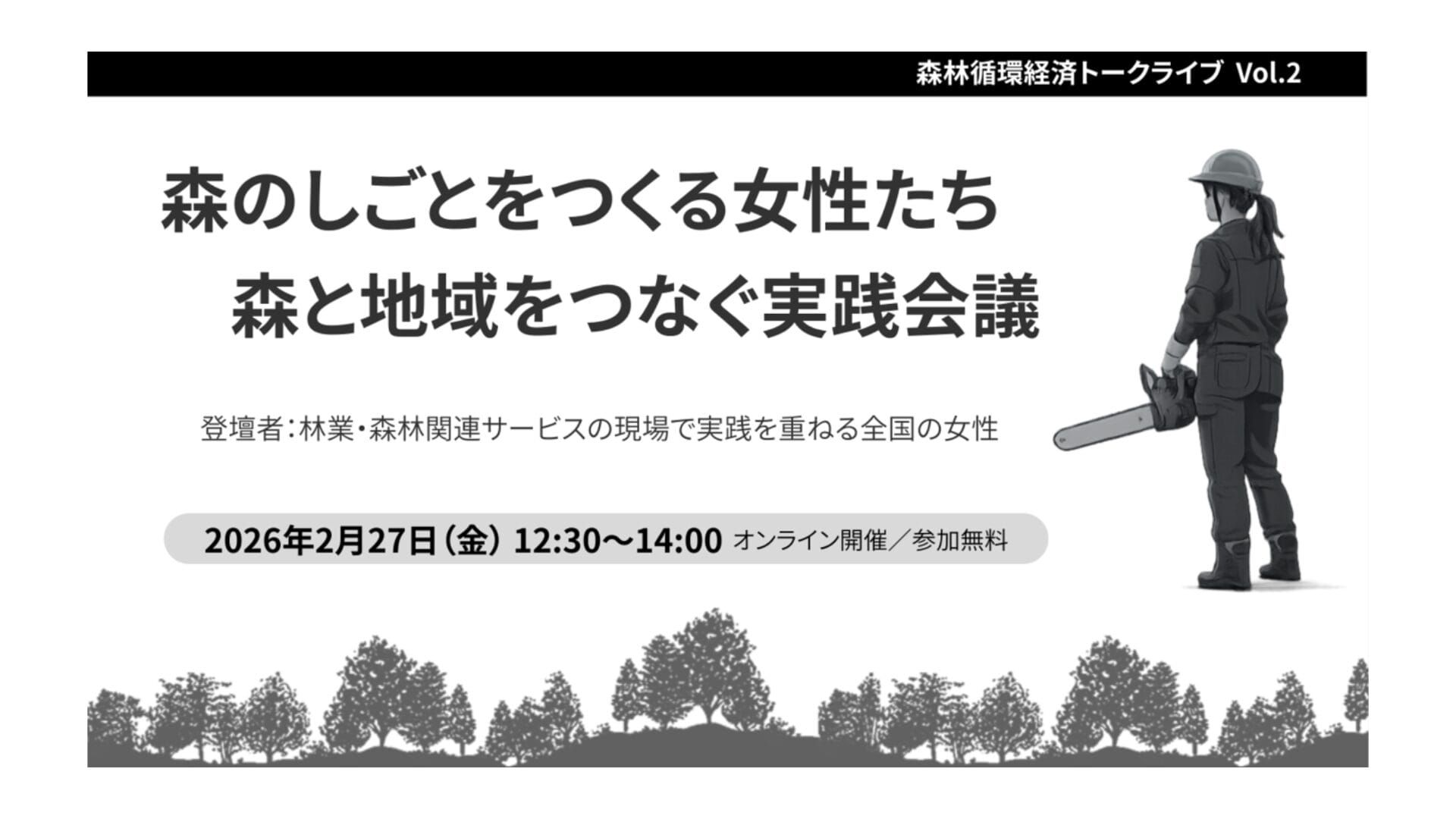 イベント名称: 森林循環経済トークライブ Vol.2「森のしごとをつくる女性たち ― 森と地域をつなぐ実践会議」