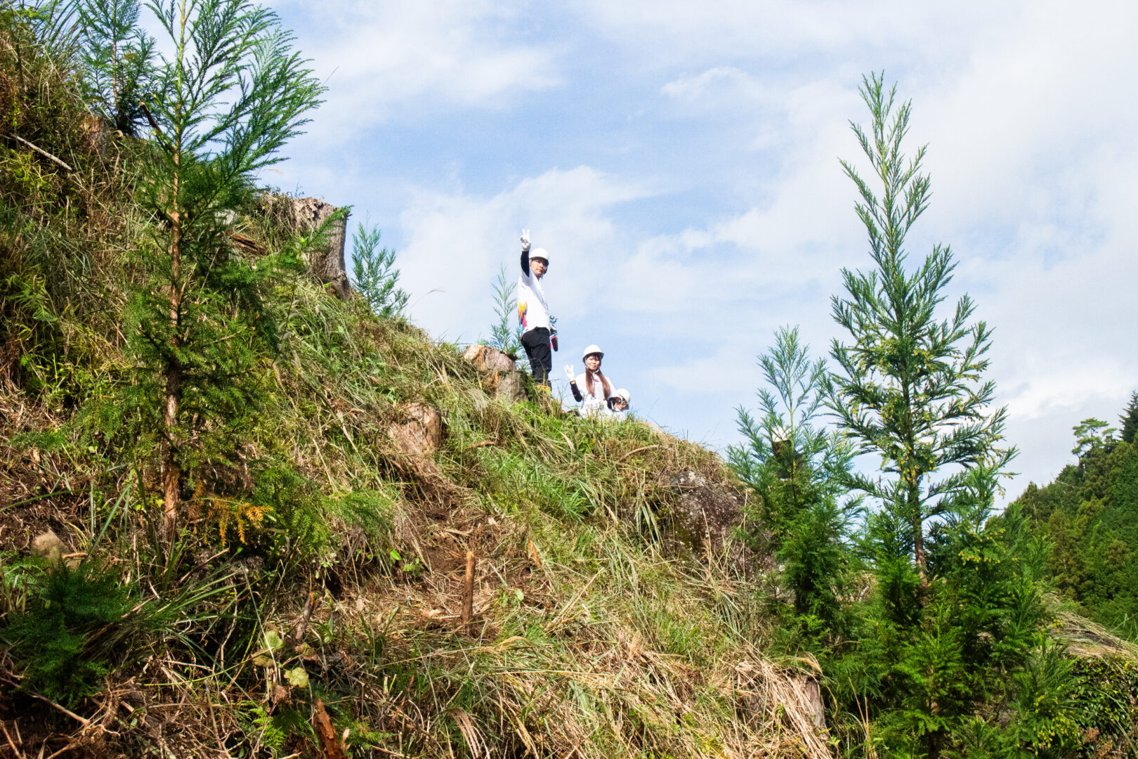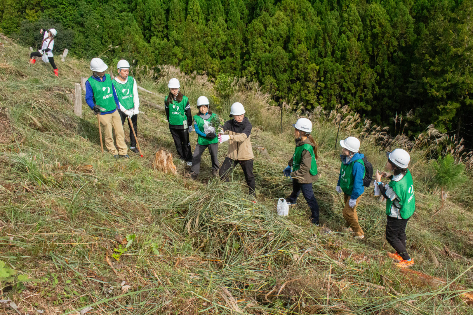DAY1は、急斜面の山林での合同植樹から始まりました。