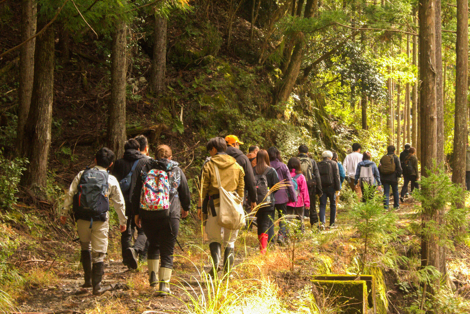 DAY2の最初のプログラムは、山主・千品様のご案内による森林散策です。